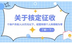 江西大額個體戶核定征收政策,大額個體戶核定:年業務量在500萬以內,申請個稅核定征收后,綜合稅負僅在1.56%左右(包括增值稅1%、附加稅0.06%、個稅核定0.5%)。...
